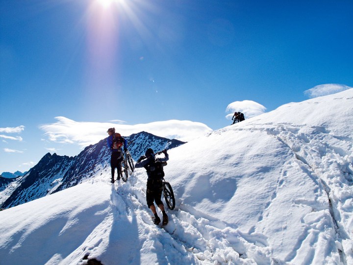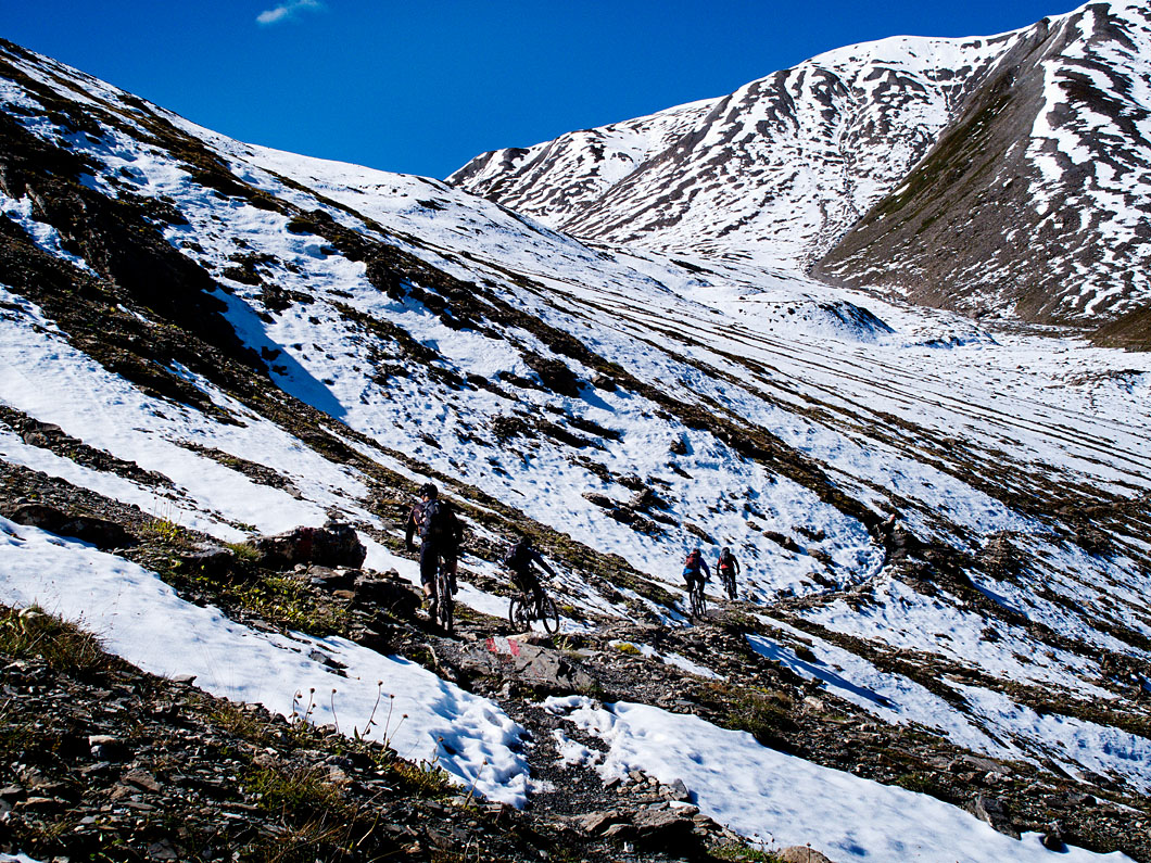 Jeg havde nok ikke gjort mig helt klart, og heller ikke læst den tyske tekst ordentligt, at det betød at vi skulle trække/skubbe cyklerne en god bid næsten hver dag. Ellers kan man ikke komme så højt op !