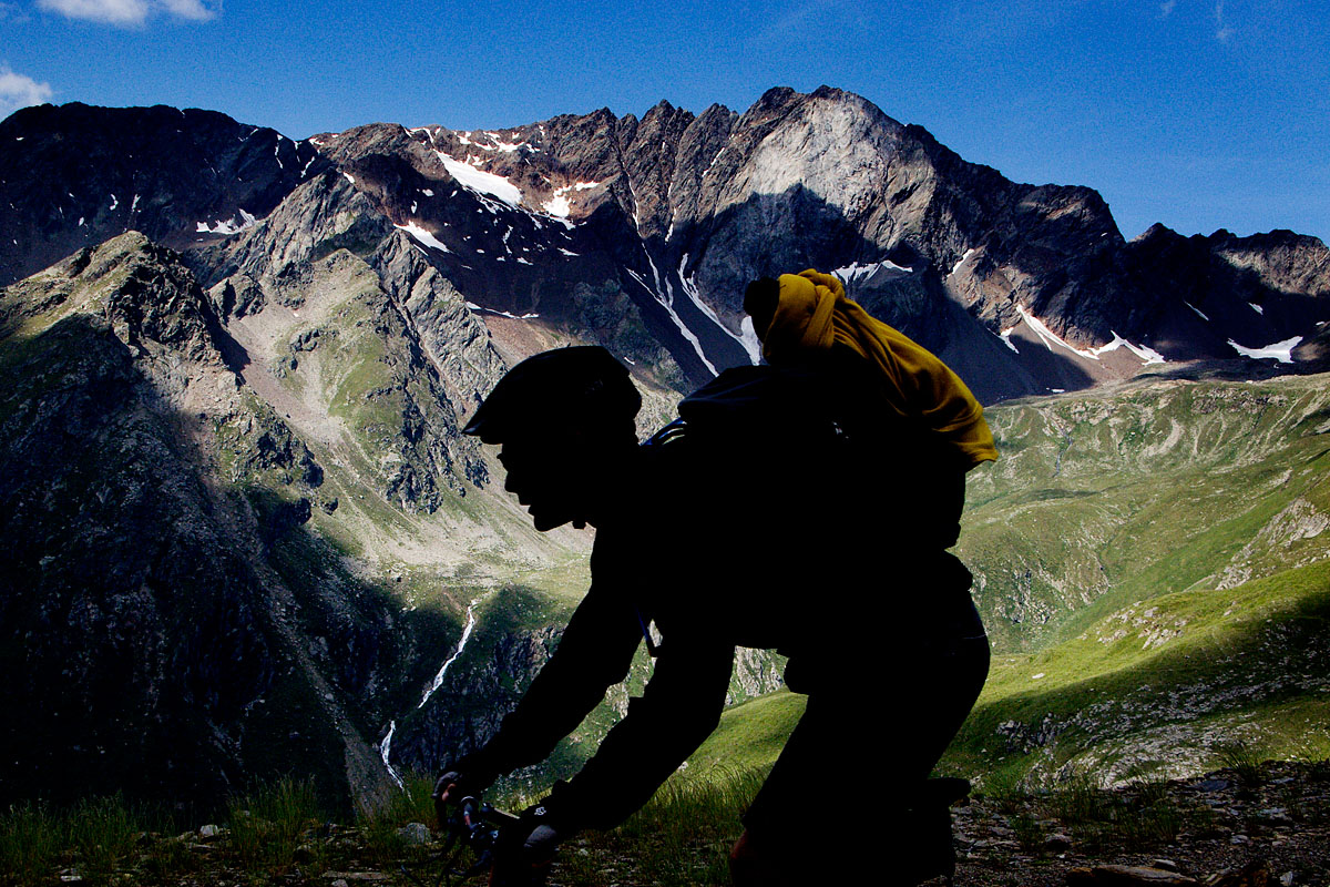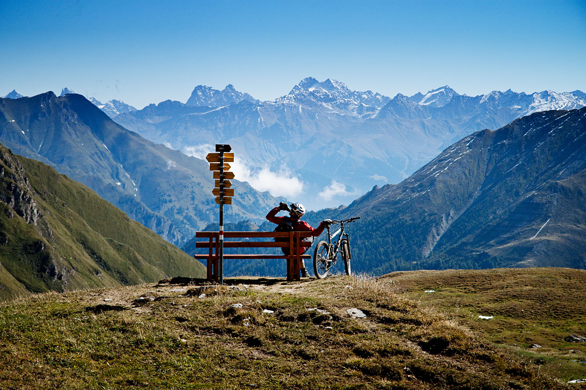 Forleden sad jeg så i sommehuset med 4 nye blade og tænkte at det egentligt var mærkeligt at det tyske Bike og deres Alpe-tillæg, slet ikke virkede på trods af deres mange og umiddelbart utrolig flotte billeder. Men pludselig kunne jeg se det; alle deres billeder er ens ! Solen skinner og to mountainbikere, lettere oplyst af et par flash’er, står op på deres cykler mens de kører forbi en smuk udsigt. Sådan ser mere end 90% af deres billeder ud. I Alpe-tillægget giver deres fotochef 2 sider gode råd om fotografering, alt sammen fornuftigt, og midt i det hele er der en box med et tips: få altid rytteren til at stå op, så billedet ikke virker udynamisk !