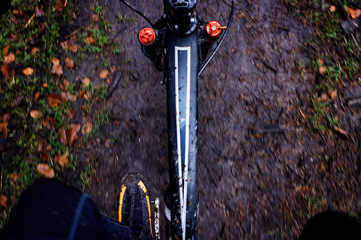 Prikken over i’et er mine nye vinterstøvler, et par 45NRTH Fasterkatt. Normalt undgår jeg orange på mit cykelgear, men her var ingen valgmuligheder, støvlerne har omvendte orange Puma-striber .. fra næse til tå. Jeg er som sagt ikke så vild med orange og det har oven i købet vist sig at det ikke bare er orange, men en meget velfungerende fluoriserende og selvlysende orange! De seks gange jeg har kørt med dem ved jeg ikke hvor mange gange jeg har fået støvlerne indenfor synsfeltet og tænkt, fåckkk der er en lige bagved med lys på! Det er faktisk værst til og fra skoven hvor jeg straks tror der kører en bil lige i røven på mig.