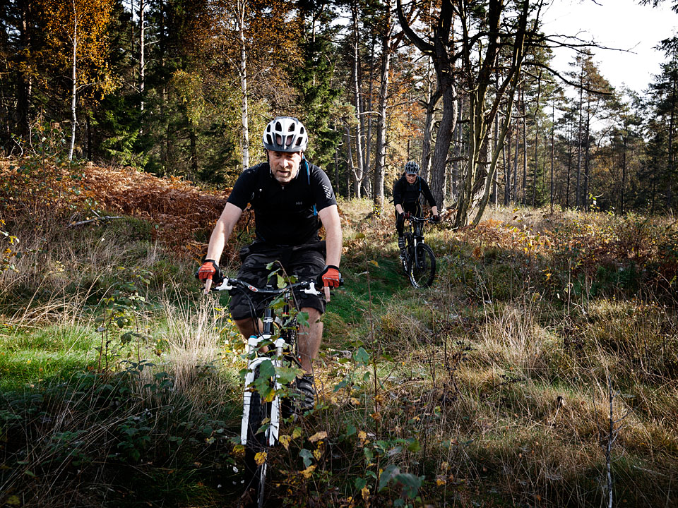 Vallåsen kræver store boller og grove dæk, men den svenske underskovs kræver noget andet. En cocktail af grus, mudrede og tilgroede hjulspor, svedige singletracks, hemmelige dyrestier, vandhuller, planker over vandløb og knoldede vandrestier, splitter dækvalget mellem godt greb og let rul. På 29er betyder grove dæk også høj vægt, og som jeg tidligere har indrømmet er jeg blevet lettere allergisk overfor tunge hjul. Mange testere har skrevet at 29er står bedre fast pga den længere kontaktflade mellem dæk og underlag, og jeg har selv erfaret at 29er dæk opfører sig anderledes end 26ere. Så jeg satte raketdækkene på igen og satsede på at bollerne var store nok, trods alt. På nær den ene gang hvor jeg begik hybris og grinede af at Kristians larvefødder mistede grebet, og derfor blev ramt af nemesis, slap de nærmest ikke. Rocket Ron kommer ikke af igen før der er ankelhøj mudder eller knæhøj sne!