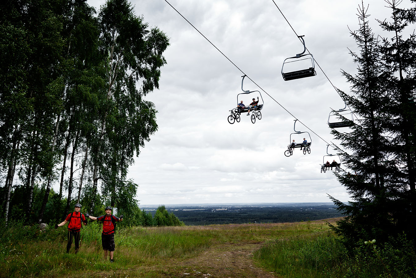 Kasper havde for en månedstid siden inviteret os andre halvgamle, halvsure mænd til Vallåsen for at køre downhill. Spændende, og et super sted med fantastiske spor og en helt anderledes stemning end vi er vant til i XC-miljøet. Lift, musik, colaer, kvinder og en stemning af ungdomsfest, men selv det og en fire fem nedkørsler på de lettere ruter, kunne ikke overbevise os om at det var noget for os. Vi mangler simpelthen bollerne til den slags, vi er kommet over den alder hvor det gælder om at putte hovedet under armen, eller i en fullfacehjelm, og køre som om fanden var i hælene, udelukkende ved tyngdekraftens til tider voldsomme hjælp.