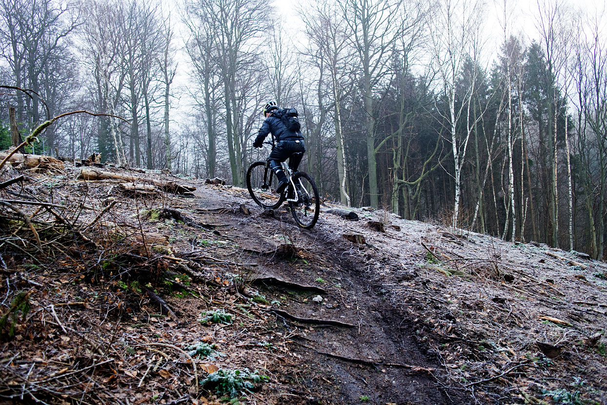Men en dag gik det op for mig at jeg, selvom bremsegrebene sidder perfekt, vrider hånden lidt når jeg strækker langefingeren ud og bremser .. og deraf ømheden i den yderste del af håndfladen. Et hurtigt forsøg med at bruge pegefingeren i stedet, viste at så fordeler trykket sig meget bedre i hele håndfladen! Efter en omrokering af greb og skiftere og en tur i skoven, er jeg ikke i tvivl .. det er den rigtige løsning! Nu skal jeg bare vænne mig til det.