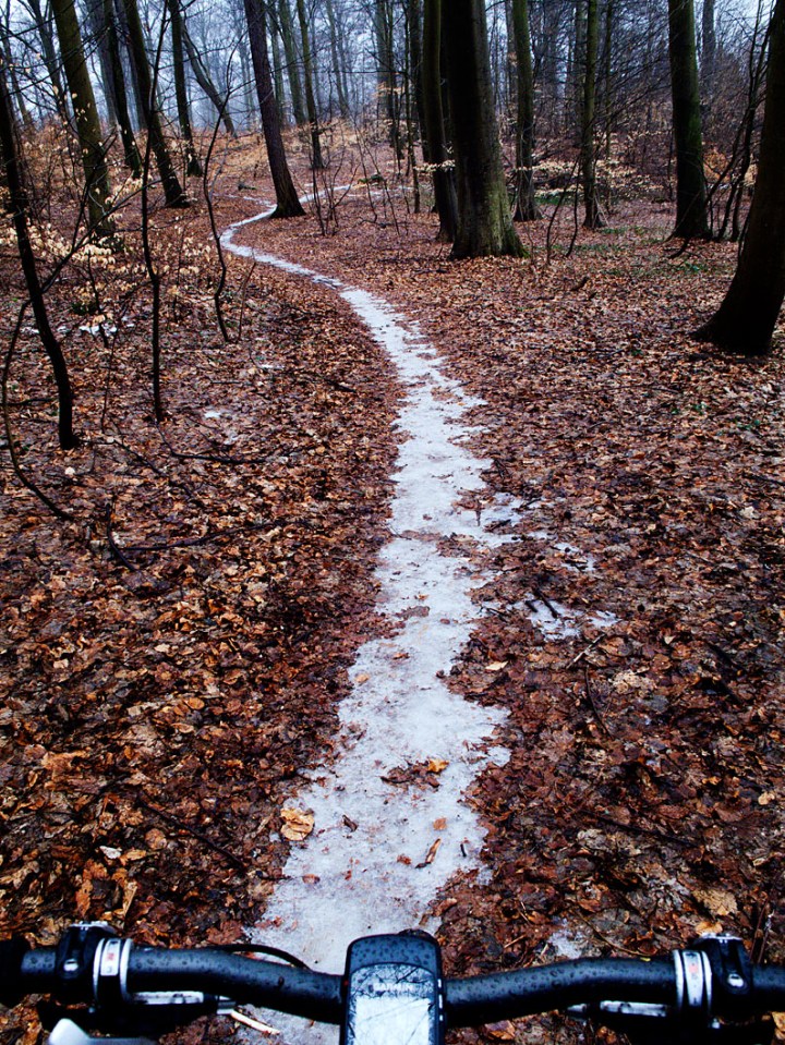 I hvert tilfælde nogen gange ! Da lørdagens forsøg på deltagelse i klubbens semiseriøse træning for sportslige seniorer, blev for broget, stak 2 af os af på egen hånd. Afsted på det blå spor lige indtil lidt skovarbejde og nogle hjulspor ødelægger det. Helt sikker på hvor sporet fortsætter, tager vi en lille smutvej. Næ, det var ikke her ! Intet problem, grusvejen er kendt så den napper vi lige. Hov, hvor er vi nu ? Gennem mudderstænk og manglende læsebriller, checker jeg lige kortet på Garminen. Nåh, ikke noget problem, vi skal lige ….