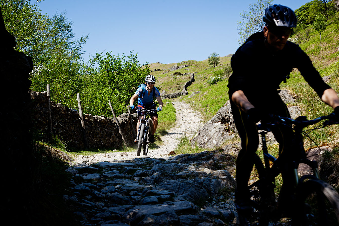 I England må man ikke køre på vandrestierne fortalte Pete som noget af det første, hvilket gjorde mig en anelse urolig .. 4 dage på grusveje er jo ikke noget at skrive hjem om. Men England har en gammel hestekultur, og alle de gamle ridestier, bridleways, er åbne for cyklister (bridle er det engelske ord for hovedtøjet til en hest). Der er generelt ingen forskel på vandrestier og bridleways, de er bare definerede som det ene, eller det andet. Så vi fik det hele; grønne græsstier, hjulspor, eroderede nedkørsler på babyheads (rullesten på størrelse med babyhoveder), klaprende skifferpladebelagte spor, anlagte trailcenter-spor, snoede småveje og masser af stenede singletracks.