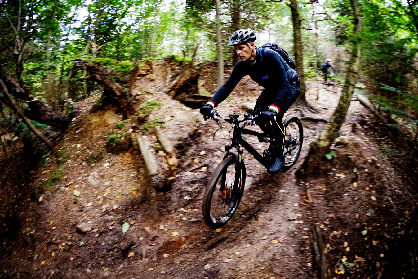 Det var en fedtet og stejlt nedkørsel med et par store tværgående rødder og deraf følgende drops. Jeg havde kørt det en gang eller to, og husker det som vanskeligt og lettere frygtindgydende .. og det var da også frygten der forårsagede styrtet. Jeg blev bange og tog bremserne! Det gør man ikke ustraffet på en stejl nedkørsel .. jeg røg ud over styret, og landede på hovedet et par meter længere nede. Efter at have sundet mig, med udsigten over søen og lidt tanker om livet og døden, var jeg klar til at køre videre .. og prøve igen ugen efter. Og det gik godt .. men så var det slut. Området med nedkørslen blev indhegnet, og alle, fodgængere som cyklister, blev forment adgang for at give området ro.